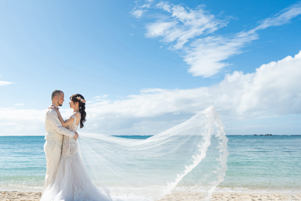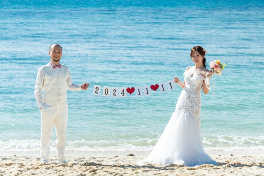 從相識到相戀,直到某天談起:「如果能辦一場屬於我們的婚禮,會是什麼模樣呢?」他笑著說想要海邊,而我則希望是能讓家人安心參加的地方。就這樣,我們選擇了沖繩實現海外婚禮的夢想,既能擁有海島的浪漫,也能讓家人一同見證。