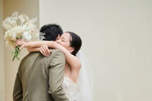 眼前的人雖然每天都可以見面,但在這一天中最特別的時刻,不免還是露出了羞澀的臉。
