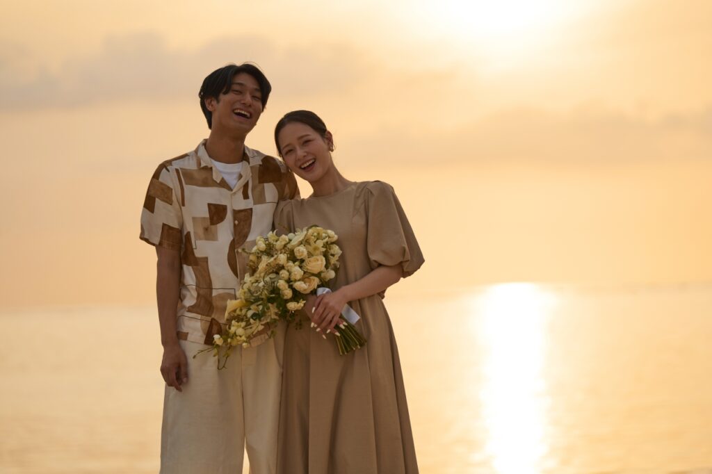 相較於傳統的春夏婚禮,跨年婚禮擁有獨特的時間意象。從12月底到1月初,不僅是回顧與重啟的節點,更是將「過去的我們」與「未來的我們」連結起來的重要時刻。在這段時間舉辦婚禮,對新人而言,是以「結婚」開啟新的一年,象徵幸福與希望;對家人而言,是一年中最能團聚、共享時光的節慶時刻;對旅程而言,更能結合海外婚禮與新年假期,成為儀式與旅行交織的雙重體驗。許多新人會選擇沖繩的教堂婚禮,搭配靜謐又典雅的氣氛,打造出與夏季截然不同的浪漫氛圍。