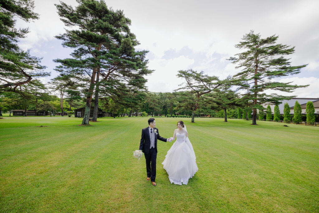 當儀式落幕,萬物歸於靜謐,所有的悸動最終都會化作永恆的影像。最後一張照片將視角留給了在綠意中漫步的新人,背景是層次分明的初春景色與溫潤的光影。在華德培專業攝影團隊的鏡頭下,我們收藏的不只是畫面,更是當下的呼吸與草木的香氣。這份感動將被悉心典藏在相冊與記憶中,成為往後日子裡溫暖彼此的養分。這場從香港諮詢開始、在輕井澤圓夢的旅程,最終會如同這片風景般,在歲月的流轉中始終保持著最初的純淨與閃耀。