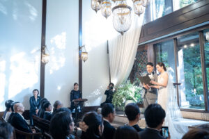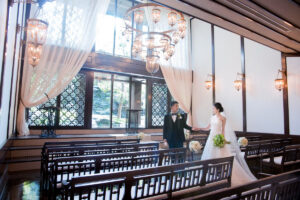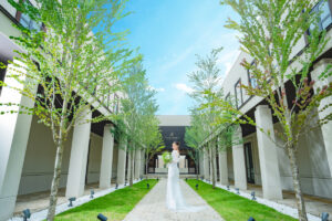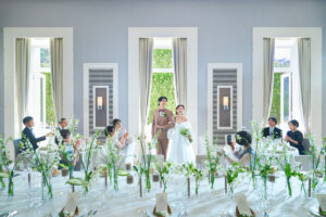 原為日本畫大師的舊宅邸,占地約2000坪的日式名庭,四季景色完全不同。教堂「THE HIGASHIYAMA」祭壇正對著流淌的瀑布、搖曳竹林與季節花卉,陽光從高天花板灑落,超有「被大自然擁抱」的療癒感。這裡的婚禮常走「京都和風+西式」的混搭路線,拍照氛圍極致唯美又不失高級感。