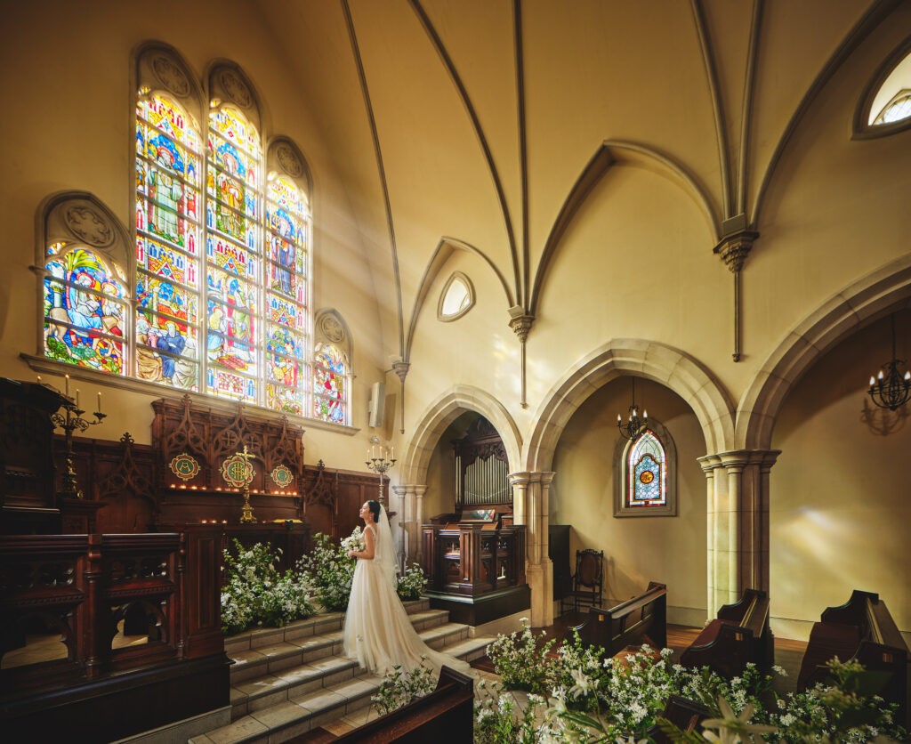 在管風琴悠揚動人的樂聲中,禮堂柔和地圍繞著誓言永恆愛戀的新人,為每一段幸福時刻添上溫柔祝福。